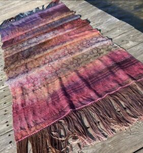 Olga tka na krośnie szale, chusty i kominy. Sama ręcznie farbuje włókna, z których potem tka.