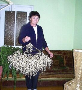 Wanda wyplata ze słomy pająki, koszyczki, wazony, szkatułki, wiatraki i mnóstwo innych drobiazgów.